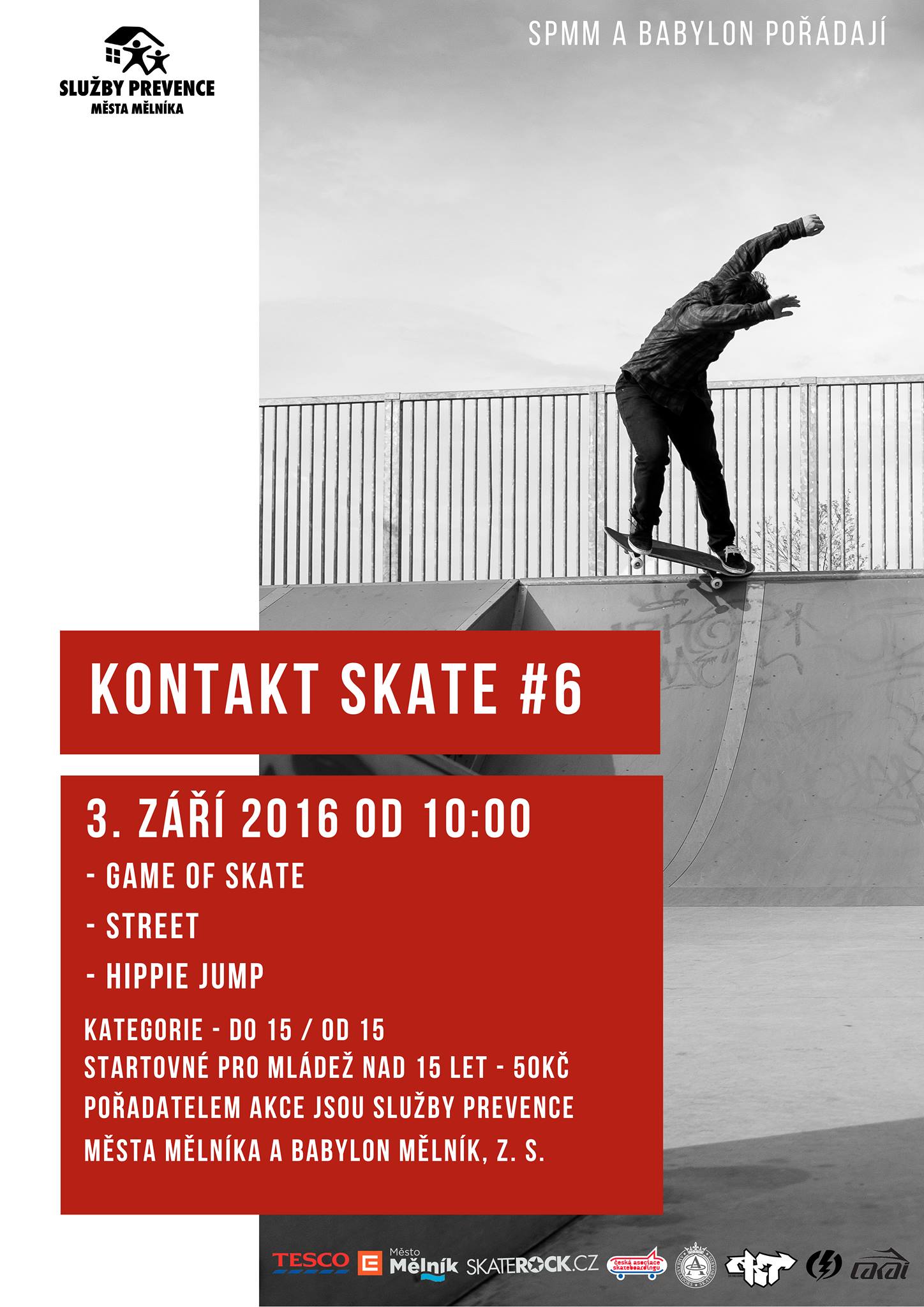 Jezdit se bude v kategoriích do 15 a nad 15 let. Těšit se můžete na disciplíny: street / game of skate / hippie jump