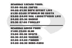 Acidelika téměř vždy přiváží aktivní, současné umělce a producenty, kteří v ČR nikdy předtím nevystoupili.