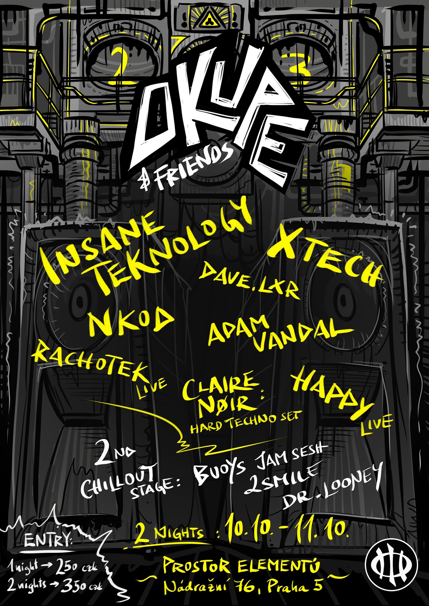 Do Prostoru Elementu na Smíchově se 10.10. a 11.10. vrací XTECH (Okupe, Tikal records) a pozval k sobě další přátele, kteří se v prostoru během 2 nocí představí s jejich převážně LIVE sety.