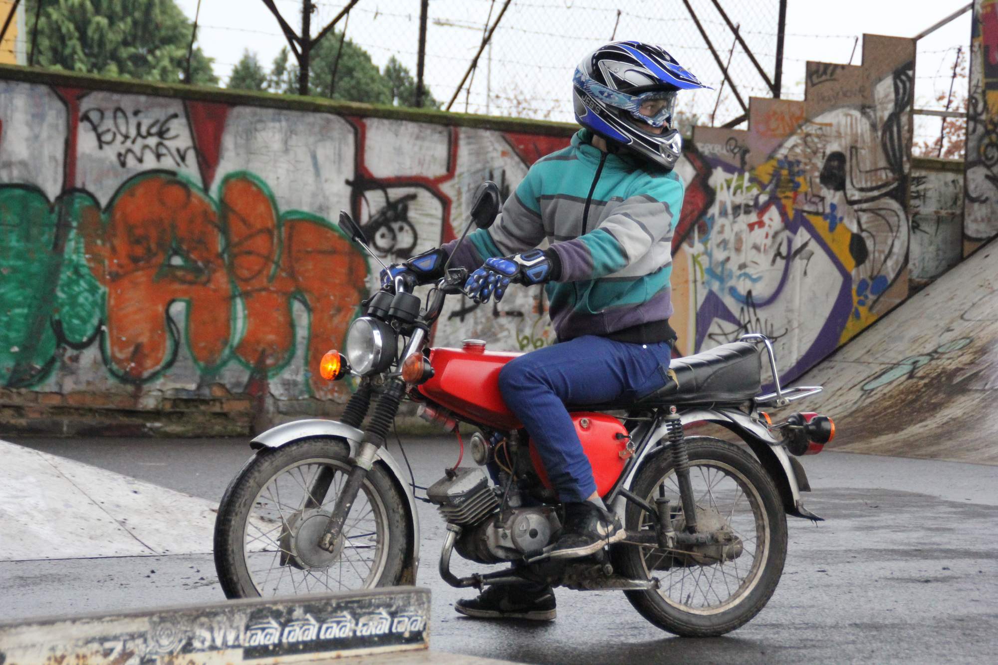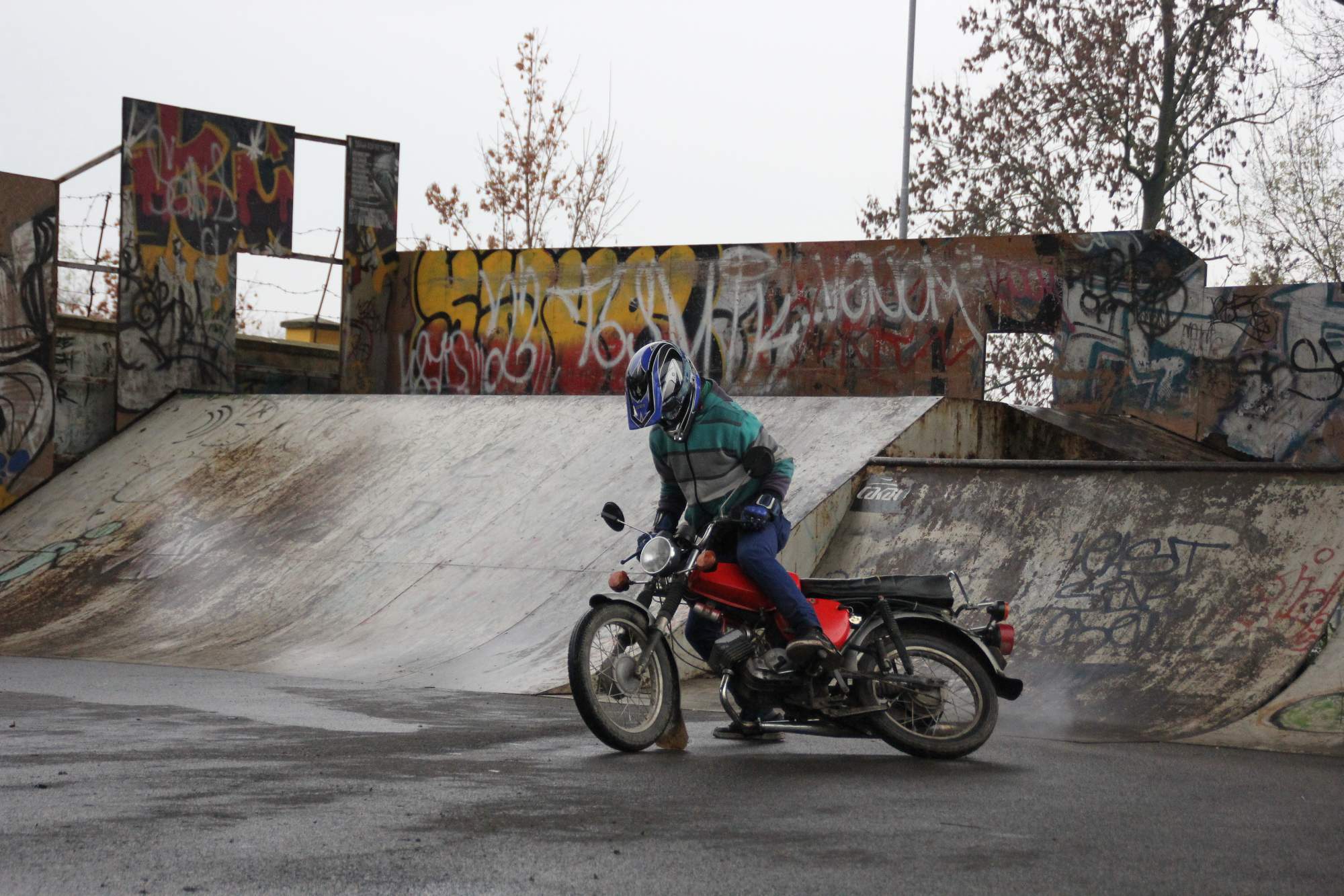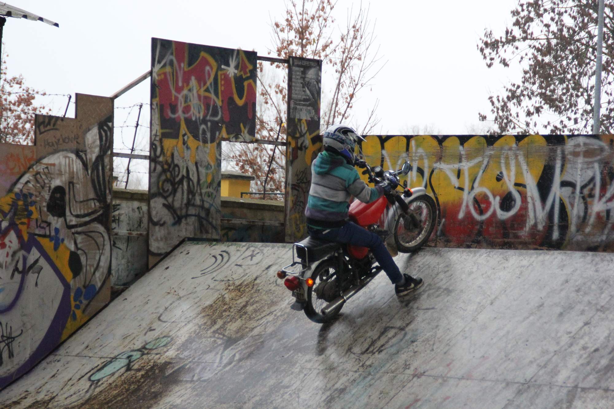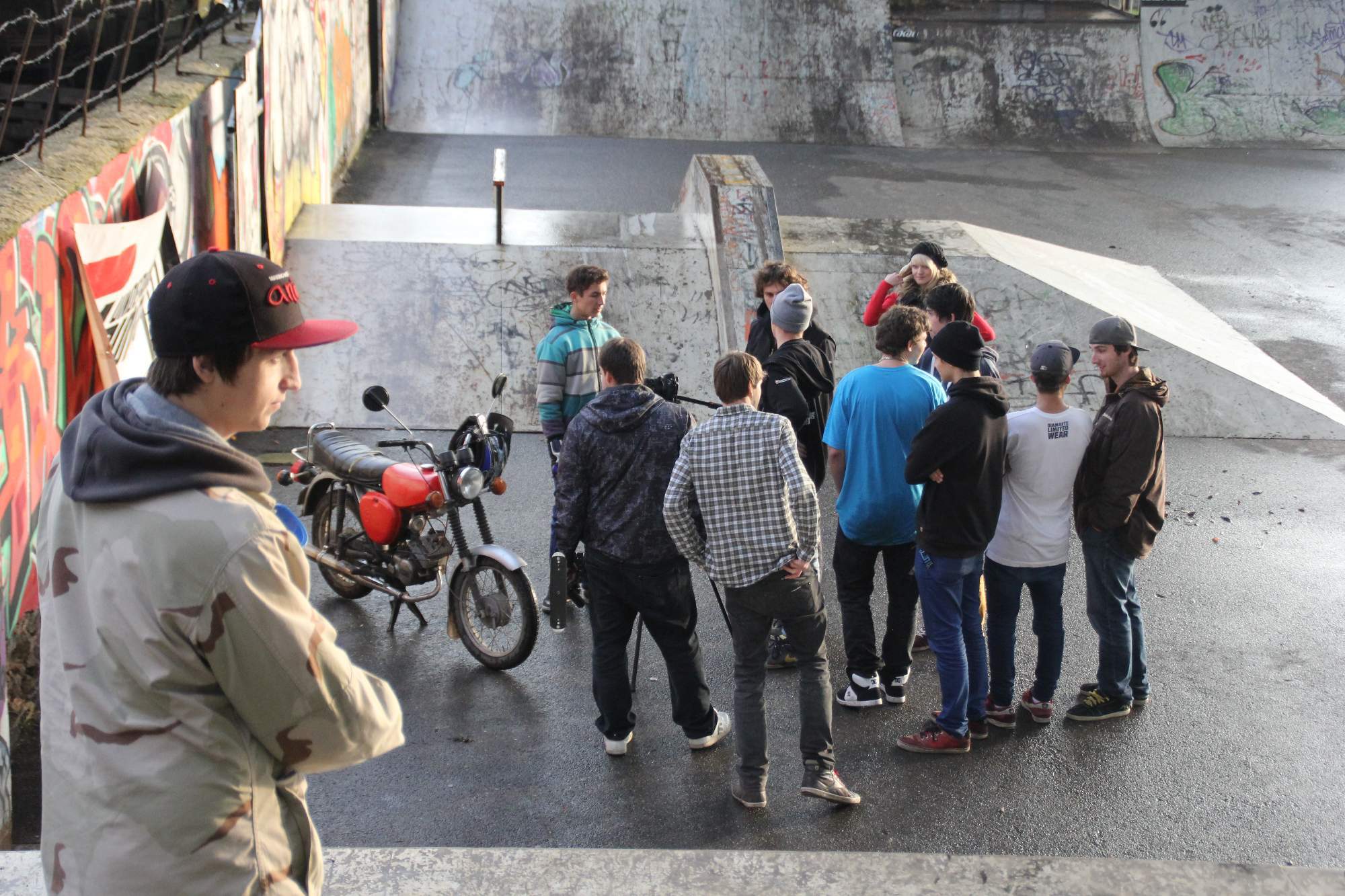 PRVNÍ DEN nám počasí vůbec nepřálo a celý den propršelo. Ráno jsem chtěl proto akci zrušit, ale vyhecoval mě Honza Vaněk, že lovosický grázlové navzdory počasí stejně přijedou a Tomáš Louthan, který řekl, že přiveze gril (který jsem nakonec vezl v autě skoro celý já v podobě cihel). Tak jsme se sešli v litoměřickém skateparku, všude bylo mokro, až na minirampu, která když je suchá, tak skoro nikoho nezajímá-chudák, ale jak nám byla dobrá v takovém počasí nekřesťanském. V prvním dni není ani tolik zajímavého ježdění, jelikož se vše dokola opakuje v prostorách rampy, ale spíše první část videa zdobí "jedna bejkárna za druhou". Hlavní perla dne byl SIMSON MOTORKÁŘ Michal a jeho zabijácká jízda.